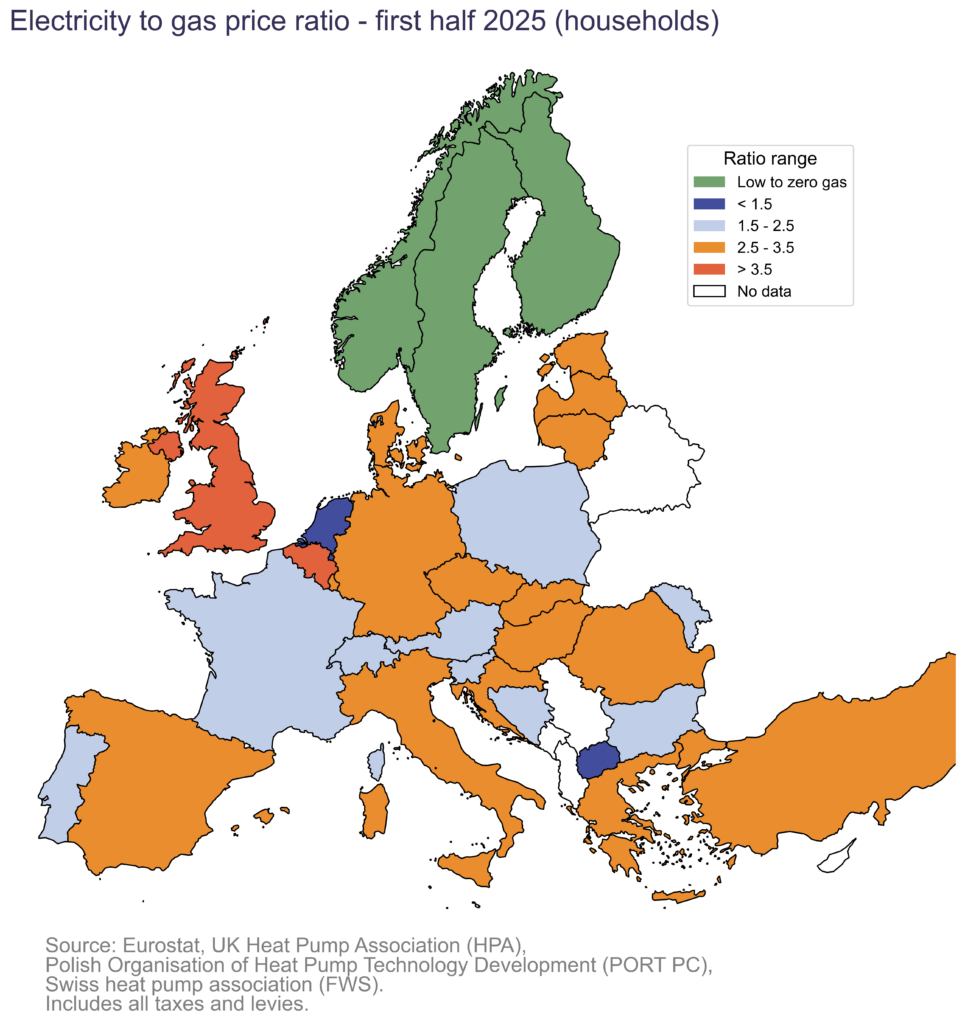 EHPA has long called for the electricity price to be no more than twice that of gas to make heat pumps competitive.